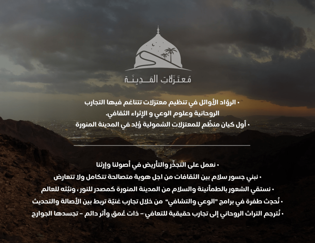 الروّاد الأوائل في تنظيم معتزلات تتناغم فيها التجارب الروحانية وعلوم الوعي و الإثراء الثقافي. أول كيان منظّم للمعتزلات الشمولية وُلِد في المدينة المنورة