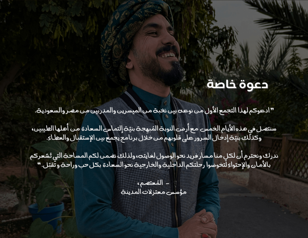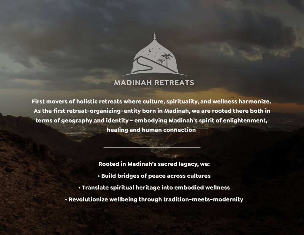 First movers of holistic retreats where culture, spirituality, and wellness harmonize. As the first retreat-organizing-entity born in Madinah, we are rooted there both in terms of geography and identity – embodying Madinah’s spirit of enlightenment, healing,